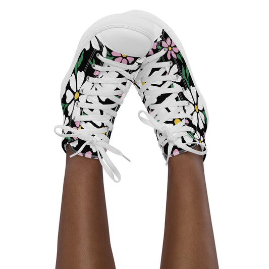 Zapatillas de lona de caña alta para mujer puntera negra corazones