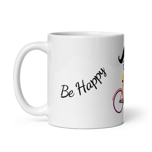 glossy white mug be happy