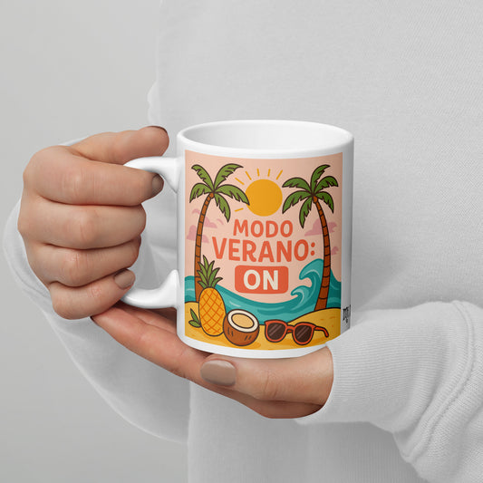 Taza "Modo Verano: ON" – Diseño Playa, Sol y Palmeras